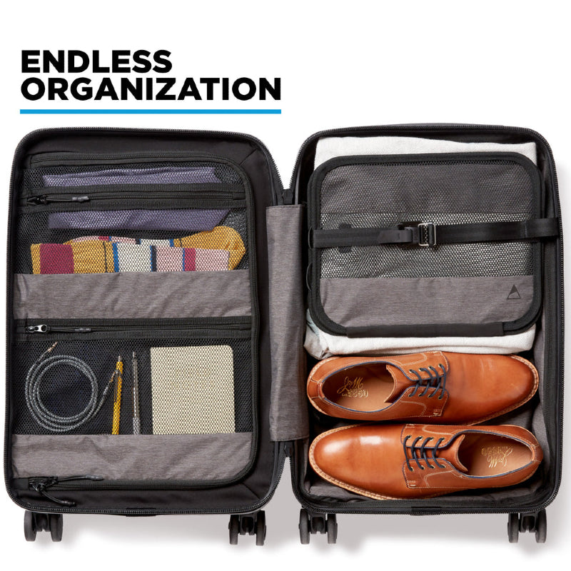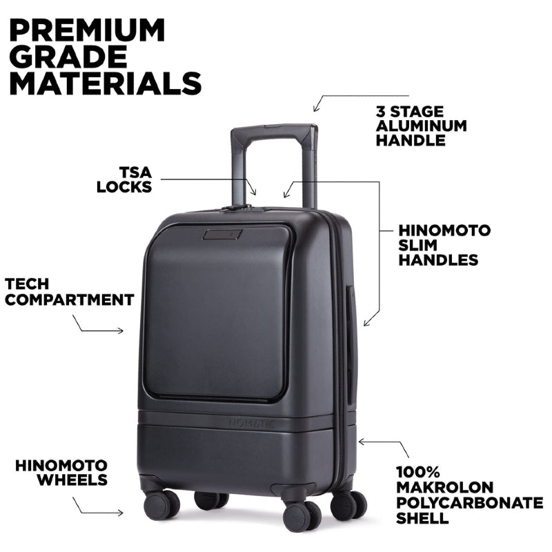 In The Box | Nomatic Carry-On Pro 22" Spinning Suitcase Tech Case/Organizer Folding Compression Panel Limited Lifetime Warranty |