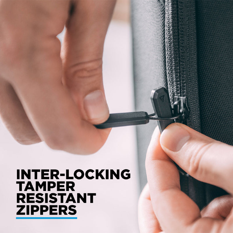 The outside of the bag features water-resistant, tamper-proof zips for protection and security, as well as reflective bars for visibility in the dark. When you are on the move, the external carry straps help you carry that one last thing. You get two external quick-access pockets and a water bottle pocket that hides away when not in use. One external pocket features a hidden compartment for items you might want to conceal. While traveling you can easily slide the bag onto your roller luggage transforming this into the perfect carry-on. All around this backpack is extremely comfortable, versatile, and ready for any adventure.