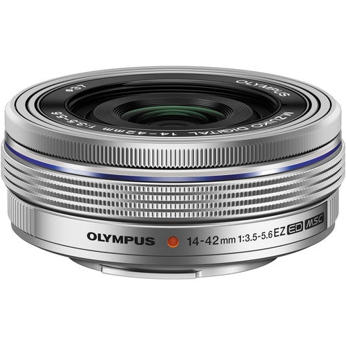 Distinguished by its slim pancake form factor, the silver M.Zuiko Digital ED 14-42mm f/3.5-5.6 EZ from Olympus is a versatile 28-84mm equivalent zoom designed for Micro Four Thirds mirrorless cameras. Despite its compact profile, this lens includes an advanced optical design, which includes aspherical, low dispersion, and high refractive index elements to achieve a high degree of sharpness and clarity throughout the zoom range. A ZERO coating has also been applied to individual elements to suppress flare and ghosting for high contrast, color-accurate imagery. In addition to the optical design and small size, the lens is also characterized by its Electronic Zoom mechanism, for smooth and constant zoom movements, and a Movie & Still Compatible (MSC) AF system that is quick, quiet, and precise to suit both video and photo applications.