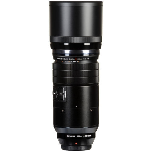 The M.Zuiko 300mm f4.0 IS PRO is equipped with a Manual Focus Clutch mechanism which makes switching from auto to manual focus extremely quick. The side of the lens barrel also features a Focus Limit switch (4m to infinity, full-range, and 1.4 to 4m) as well as an IS On/Off switch and L-Fn button which can be programmed to perform one of 27 different functions. A built-in, retractable lens hood offers additional protection from stray light and the removable tripod base plate features a quick shoe compatible rail.