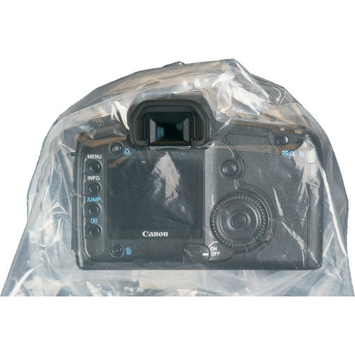 The OP/TECH USA 18" Rainsleeve (Set of 2) is a polyethylene sleeve made to protect an SLR camera with a lens up 7.0" in diameter and 18" in length. The sleeve protects the gear from dust and inclement weather. It is designed for handheld use or tripod application. It has a unique eyepiece opening adapts to most viewfinders for viewing through the lens. Camera & lens controls are easily visible and operable through the sleeve. Drawstring lens opening offers easy access and a snug fit. There are two Rainsleeves included.
