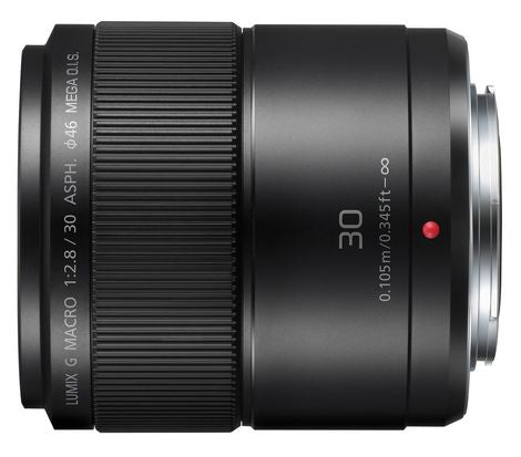Designed for close-up shooting, the Lumix G Macro 30mm f/2.8 ASPH. MEGA O.I.S. from Panasonic is a 60mm-equivalent prime lens designed for Micro Four Thirds mirrorless digital cameras. Its macro capabilities enable a minimum focusing distance of 4.1" along with a 1:1 magnification ratio for life-size imaging of nearby subjects. One aspherical element helps to control spherical aberrations and distortions and a multi-layer coating reduces ghosting and lens flare for increased contrast and color fidelity.