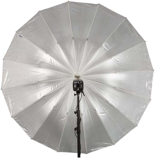 The Soft Silver PLM™ umbrella is perfect for everyday use with various subjects as it bounces the light from the flash unit, retaining high efficiency with a wide angle of coverage. The soft silver fabric produces a controlled, feathered falloff with very soft shadows, perfectly round catchlights and an added specular punch over the white PLM™ umbrellas.