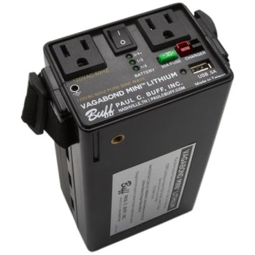 In The Box | (1) Inverter with battery attached, (1) Charger, (1) Shoulder Strap, Vagabond Mini Lithium Product Manual, 30-Day Warranty (Applies only to factory defects) |