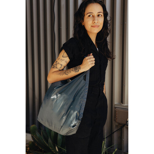 The Packable Tote from Peak Design is a lightweight, zippered, and unstructured carryall designed for everyday commutes or weekend getaways. Built from a single piece of self-healing nylon to minimize seams and stress points, it delivers strength with simplicity. A padded microfiber strap offers comfortable hand or shoulder carry, while a secure zip closure keeps belongings safe. Inside, a pocket provides quick access to essentials like your keys, wallet, or a phone up to the size of an iPhone 13 Pro. Crafted from 100% recycled nylon, the tote holds 12L, weighs just 2.8 oz, and compresses down to the size of a deck of cards for effortless packing into luggage, backpacks, or larger bags.