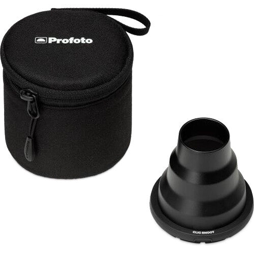 Compatible with A-series flashes, the Profoto Clic Snoot easily attaches and detaches using a built-in magnetic mount. The snoot narrows the flash's beam spread and allows selective lighting, tunneling the light into a soft circle with a diameter that decreases as the flash is moved closer. The snoot is stackable with other Clic modifiers and comes with a protective case.