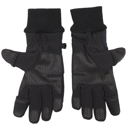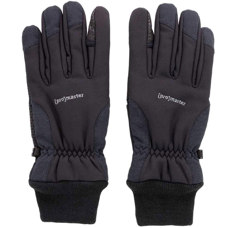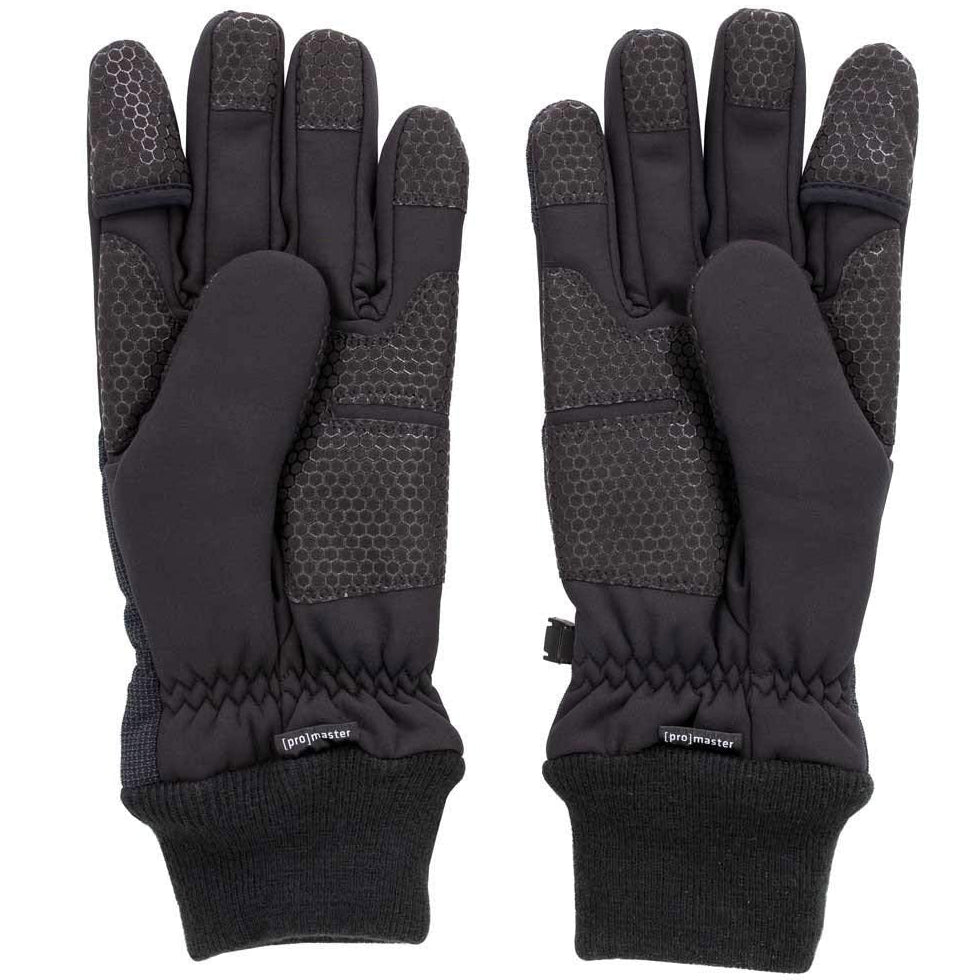 ProMaster 4-Layer Photo Gloves are excellent for photography in cold weather. The 4-layer design is windproof and water resistant to keep your hands warm. The index finger and thumb tips fold back and are held in place with small magnets. This allows for a more tactile experience with your camera. The index fingertip is made of a touch screen-compatible material allowing you to operate a camera touch LCD screen, tablet, or phone easily when it is not folded back. A non-slip coating on the fingers and palm ensures a firm, safe grip on your precious photo gear. Ribbed wrist cuffs keep the wind out and warmth in.