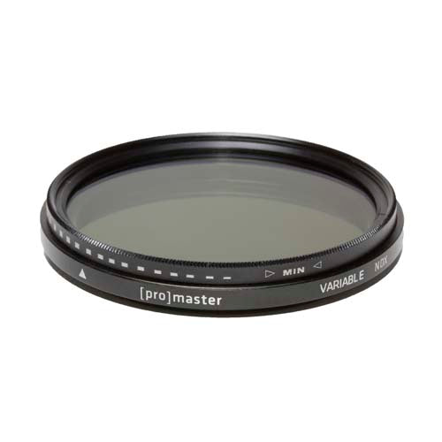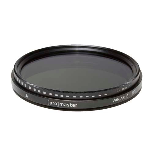 The ProMaster Digital HGX Variable Neutral Density Filter variable neutral density filter providing light reduction of about 1.3 to 8.6 stops. The ND3 to ND400 density creates a darkening of the entire image, allowing you to photograph with a wider aperture or slower shutter speed than normally required. ProMaster Digital HGX filters are the most advanced optical filters available today for digital photography featuring: • Next Generation Digital Anti-Reflection Multi Coating – Specially formulated to minimize internal reflections created by CCD and CMOS sensors in a digital SLR. • REPELLAMAX™ Element Resistant Coating – This EXCLUSIVE ProMaster coating repels moisture, fingerprints, dust, dirt, and grime to ensure the sharpest images possible • Hardened Optical Glass – Ultra hardened optical glass resists surface scratching and stands up to the most intensive use. • Low Profile Anti-Reflective Frame – Ultra thin low profile frame helps prevent vignetting on super wide digital format lenses. The satin-like smooth finish helps to minimize reflected light. • Black Rimmed Glass – The outer rim of the filter glass is treated with a special black-ink.