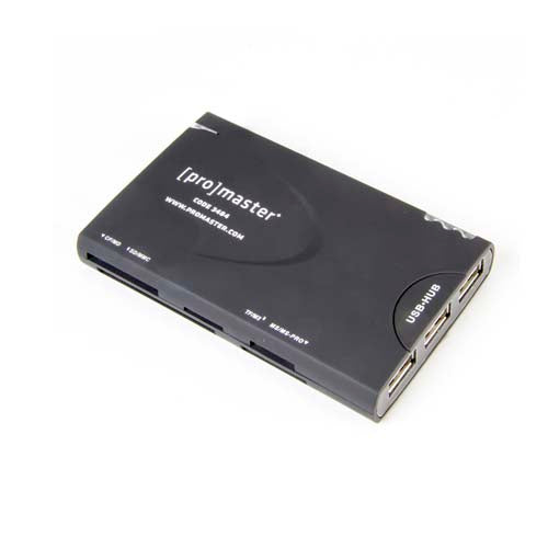The ProMaster All-In-One Card Reader - USB 2.0 (N) makes it easy to read and write files. Insert a memory card into the reader and it appears as a drive on your computer. Use up to four dierent types of cards at once and you can copy files between cards and your computer! The three USB ports work as a hub to connect a variety of devices.