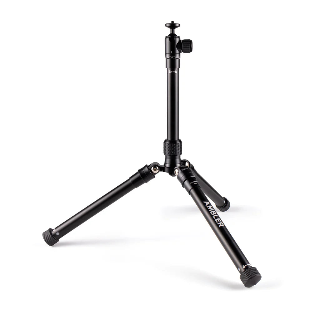 Rapid deployment: Unlike standard tripods with twist or flip locks for each section, all it takes is a twist of the wrist to fully extend or collapse the Ambler’s telescoping 5-section legs and center column. Simply turn the end of a leg (or the top of the center column) to the left, extend it to your desired length, and twist it back to the right to lock it in place – it’s incredibly fast and easy.
