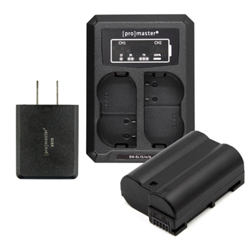 The ProMaster Battery & Charger Kit is a terrific companion for ensuring you always have plenty of power for your camera. It includes a Dually charger, an AC adapter, and a high-quality lithium-ion battery for use in cameras that accept the Nikon EN-EL15c.
