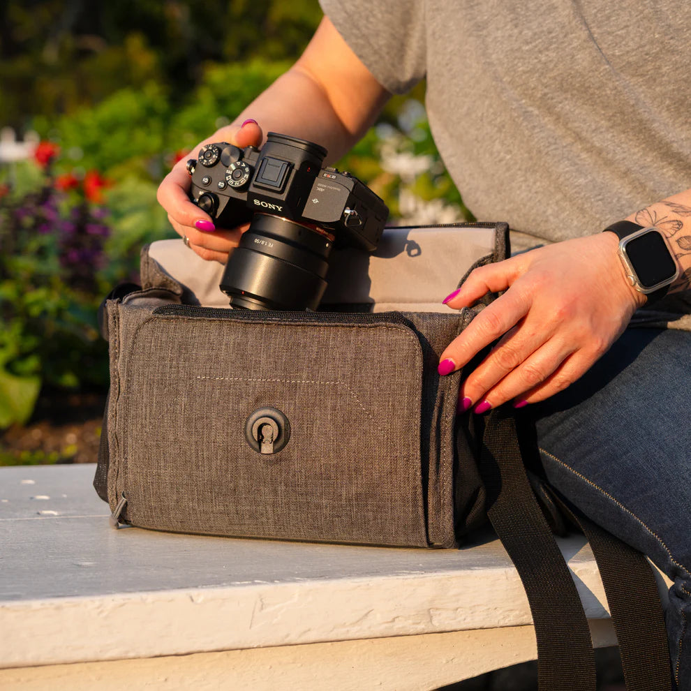 Compact yet highly functional, this Small Blue Ridge bag is an excellent companion for photographers carrying a DSLR or mirrorless setup with essential lenses, a flash, and a small tablet on the go.