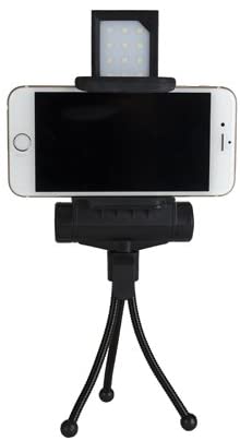The ProMaster Camera Phone Bright Mount will illuminate your photos and videos while holding your phone securely. It uses a spring-loaded jaw to hold a phone (fits a wide variety of sizes) and it has a standard ¼-20 mount in its base. Attach the mount to a selfie-stick, stabilizer, or the included tabletop tripod. The LED panel swivels forward and backward, so you can shine it on a subject or take a great selfie! It features four brightness levels and a built-in rechargeable battery. This kit includes the bright mount, a tabletop tripod, and a USB charging cable!