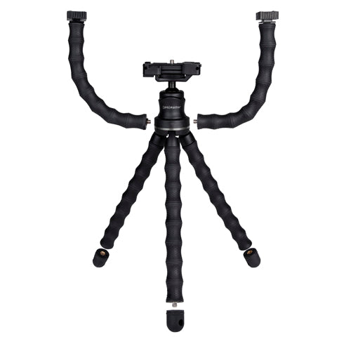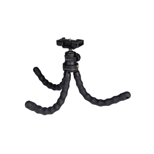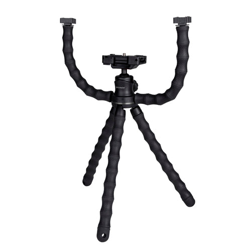 The ProMaster Crazy Rig provides steady, flexible support for photography and videography when using a camera or smartphone. Its built-in, removable head switches between camera and smartphone mode in seconds and offers a full range of angle adjustments. The removable Crazy Arms provide two 1/4"-20 connections and optional cold shoes for mounting lights, microphones, or other accessories. Placing the head in smartphone mode reveals an additional cold shoe.