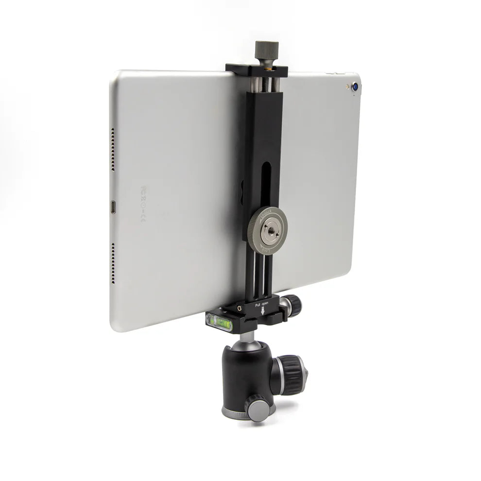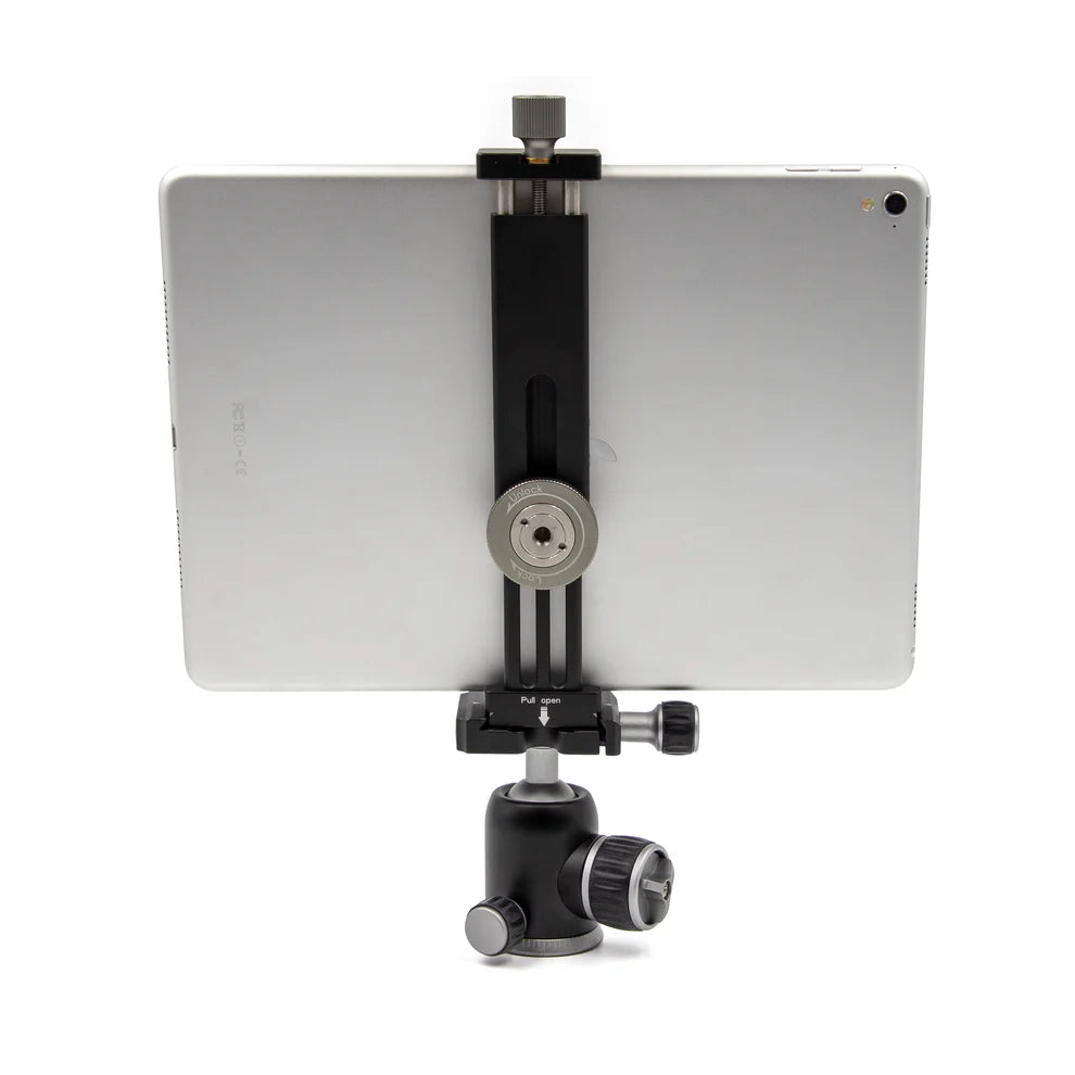 The ProMaster Dovetail Tablet Clamp is a great way to mount your tablet to a tripod, flex arm, studio clamp, and more, using one of its two ¼”-20 threaded ports. Or, connect it to a tripod using the integrated dovetail (arca-type) foot. It’s constructed of high quality aluminum and is compact and lightweight. The jaws open to a maximum size of 7 1/2" to fit most tablets.