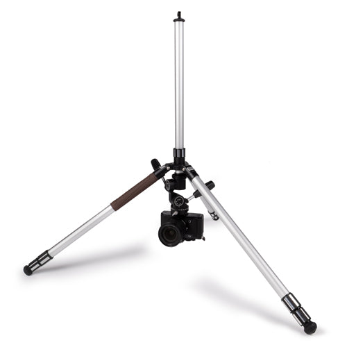 The Epoch’s 3 rigid leg sections are made from modern, high-strength, thin-wall aluminum. With a light silver finish, the legs have the outward appearance of an older stainless steel tripod but do so without tipping the scales: they are lightweight and strong. Fewer leg sections means fewer joints, and fewer joints means greater strength. There are just two locks on each leg, and the smallest leg section has a robust 22mm diameter—these features provide far greater stability than a 5-section tripod. Both twist locks can be opened and closed at the same time so that each leg can be fully extended in a matter of seconds, even while wearing thick gloves. The Epoch’s leg locks are machined from aluminum with a black and silver design that pays homage to the scalloped focusing ring found on some classic camera lenses.