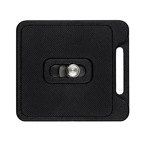 This Quick Release plate is precision machined using high-grade aluminum and it has a soft, grippy, anti-twist pad around its entire top surface. An integrated strap slot works with a variety of shoulder straps and hand grips. Two safety bolts are installed in the bottom of the plate to prevent it from accidentally sliding off a head. These bolts are removable if you so choose.