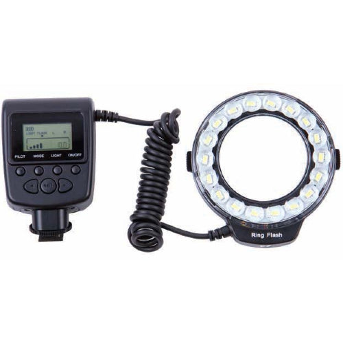 - Flash includes mounting rings for lenses with filter threads of 49, 52, 55, 58, 62, 67, 72, and 77