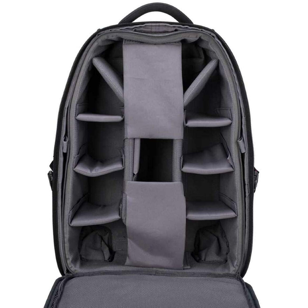 The Rollerback’s spacious interior and numerous pockets hold your camera gear, accessories and tablet or laptop computer for safe transport. A convenient tripod carrier is located on the outer, front of the bag. Attachment ports on the outer sides are great for connecting ProMaster lens pouches and other accessories. The main interior camera compartment is completely removable from the Rollerback so you can use it for carrying non-photographic items as well.