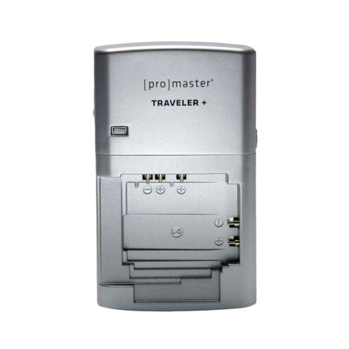 The ProMaster TRAVELER + LITHIUM ION BATTERY CHARGER is a versatile, compact, go anywhere charger for your Li-ION digital camera and camcorder batteries. The Traveler + charger features a built in switching power supply that can be powered from either 110v - 240v AC or 12V DC (optional DC power cord required) for true worldwide compatibility. Combined with the USB power output port and its compact size, it makes a PERFECT solution for those on the go or to use at home. The ProMaster Traveler + charger is available in models to fit most Li-ION digital camera batteries.