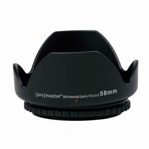 The ProMaster SystemPRO Universal Lens Hood is specially designed for the wide focal lengths required by today’s digital SLR cameras. Its “petal” shape design is instrumental in helping to reduce glare while minimizing the potential for vignetting of your image. The unique two-piece design of this hood allows you to quickly and easily reverse the hood for storage. The mounting collar accepts your standard lens cap for the ultimate in protection.
