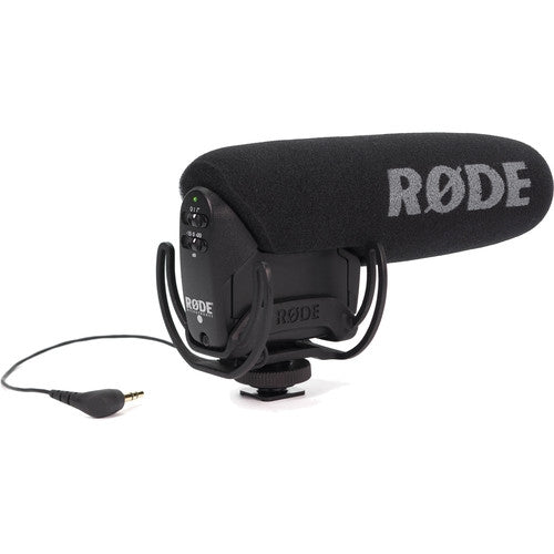 The VideoMic Pro with Rycote Lyre Shockmountfrom Rode is a supercardioid condenser shotgun microphone that terminates in a 1/8" stereo mini-jack (dual mono), includes an integrated shockmount, and an integrated foam windscreen. It can be used to capture audio for camcorders, DSLR, and portable recorders as a source of primary and reference audio.
