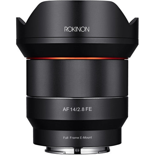 Expand your imaging capabilities with the ultra-wide-angle view provided by Rokinon's AF 14mm f/2.8 FE Lens for full-frame Sony E-mount cameras. This optic is quite fast for its class with an f/2.8 maximum aperture which will help users work in low-light conditions. It also incorporates three aspherical and two extra-low dispersion elements to reduce aberrations for clean, sharp images. It also uses an Ultra Multi-Coating and integrated lens hood to minimize the impact of flare and ghosting in your photographs. The lens offers an autofocus motor optimized for use with Sony cameras to provide fast, accurate performance and it has manual focus override for making tweaks in any AF mode. Additionally, the lens features a rounded 7-blade diaphragm for smooth out-of-focus elements.