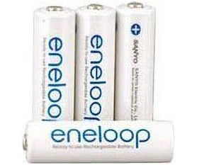 - Includes 4 AA eneloop Ni-MH Pre-Charged Rechargeable Batteries