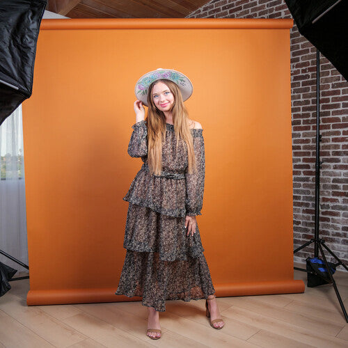 Photograph people and products against a smooth, uncluttered background with this 86" x 36' roll of #17 Sienna Seamless Background Paper from Savage. To facilitate even lighting, the surface of the paper is non-reflective and has a fine-tooth finish. In addition to photography, the paper may be used for events, decorations, banners, and more.