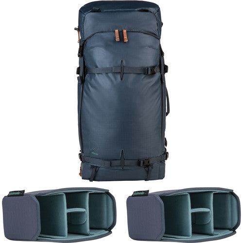 In The Box | Shimoda Designs Explore 60 Backpack (Blue Nights) 2 x Small Core Unit Inserts Accessory Straps Multi-Use Pouch Limited 5-Year Warranty |