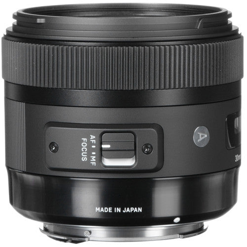 The 30mm f/1.4 DC HSM Art Lens for Sony from Sigma is a prime lens designed for Sony APS-C format cameras. It's 35mm focal length equivalent is 45mm which places it in the category of standard focal length lenses. With its particularly fast maximum aperture of f/1.4, the lens will perform very well in low light situations and provides a shallow depth of field focus. With updated optical configurations (9 elements in 8 groups), as well as rounded aperture blades, the lens delivers sharp detail and nice background bokeh. Its minimum focus distance is 11.8" (30 cm).