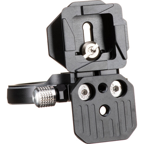 The mounting foot on the Atoll is Arca-type compatible, providing wide-range compatibility with most tripod heads and clamps on the market. It also features a standard 1/4"-20 threaded socket. The second plate under the camera is also Arca-type compatible and additionally compatible with various capture clip-style accessories. The Atoll is constructed from aircraft-grade aluminum alloy with a black finish, and is rugged yet remarkably lightweight.