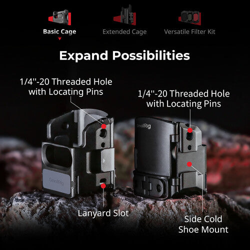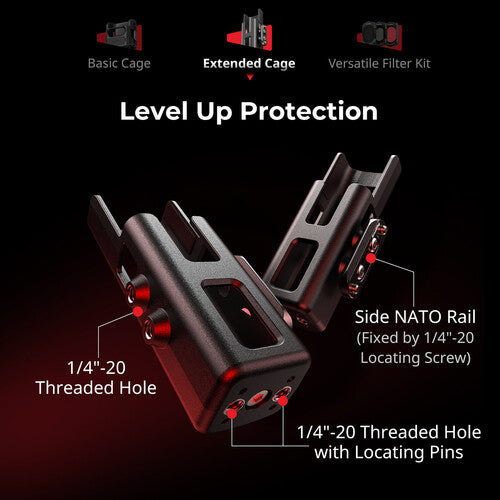 The Extended Cage Kit from SmallRig provides added protection and accessory mounts to your DJI Osmo Pocket 3 with attached battery handle. Mounting to the bottom of your Osmo without the need for tools, the cage fits snugly with built-in protective pads to prevent scratching and offers unobstructed button access. You can mount the included NATO rail to either side of the cage, which features three pairs of 1/4"-20 threads.