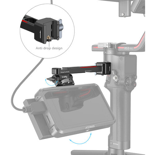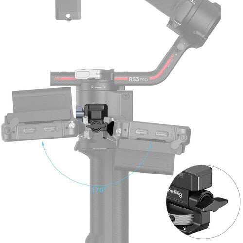 Via a built-in NATO mount, this SmallRig Monitor Mount attaches to the NATO rail on the side of your DJI RS 2, RSC 2, RS 3, RS 3 Pro, RS 3 Mini, RS 4, or RS 4 Pro gimbal and provides multiple mounting options for expanding your gimbal on either side, in a quick release solution. It can rotate 165° to ensure the right position for your monitor.