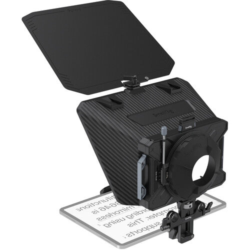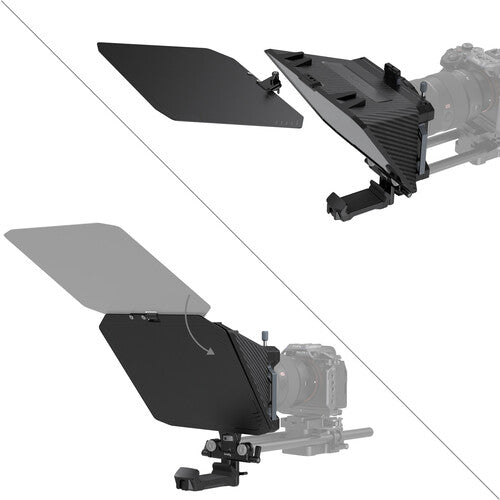 Record scripted content with your tablet or mirrorless camera using the SmallRig Multifunctional Teleprompter thanks to its included mounting accessories. The tablet clamp can accommodate devices up to 11" wide while the back clamp and silicone lens covering features openings for lenses with outer diameters from 22 to 95mm. A glass-prompting surface, adjustable top flag, and 4 x 5.65" filter frame ensures your script is visible from up to 16' away.