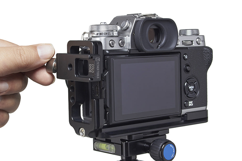To attach, secure the Arca Clamp to your L-Bracket of choice, leaving room to insert the cable. Then, slide the cold shoe foot of the Air Direct into the Arca Clamp Mount and tighten.
