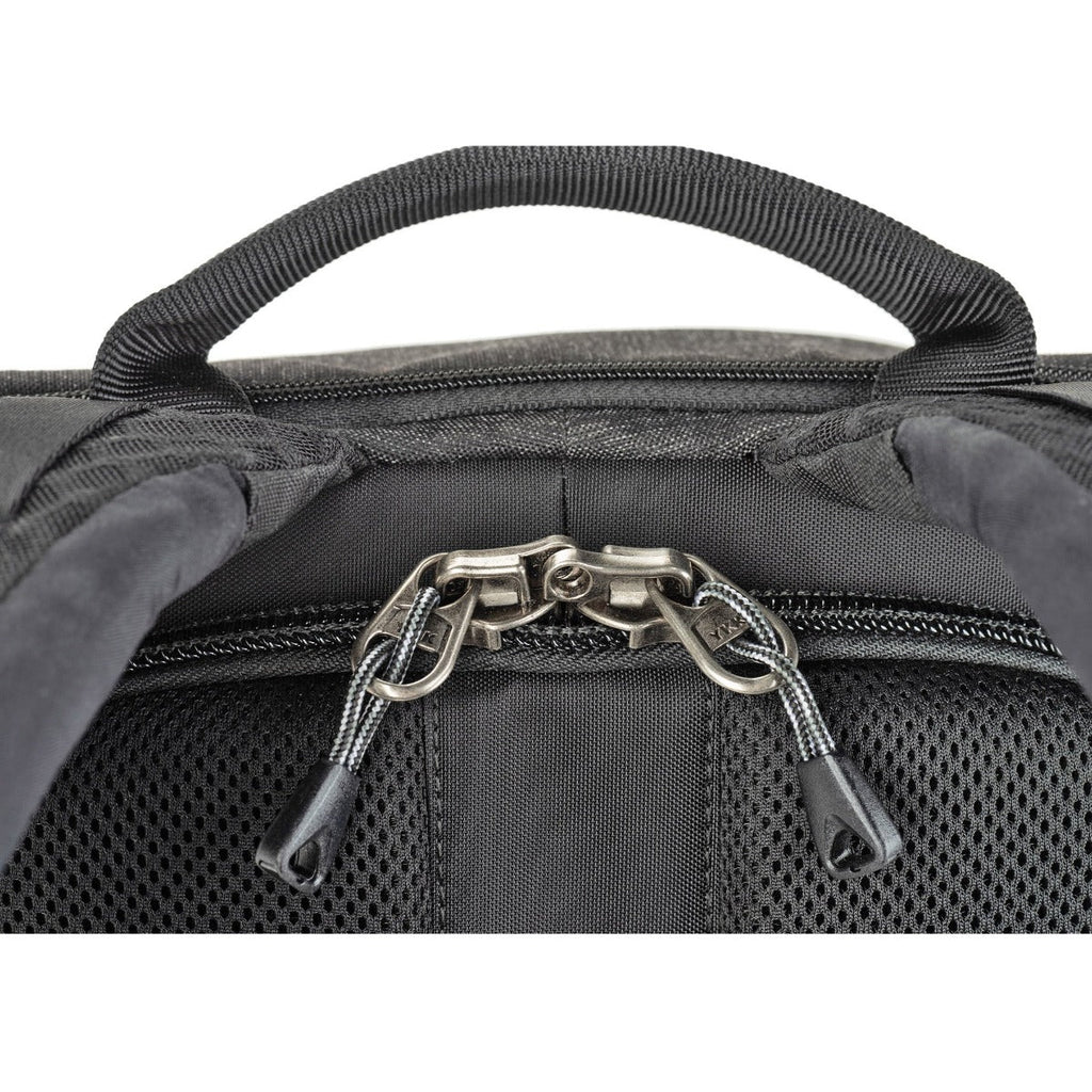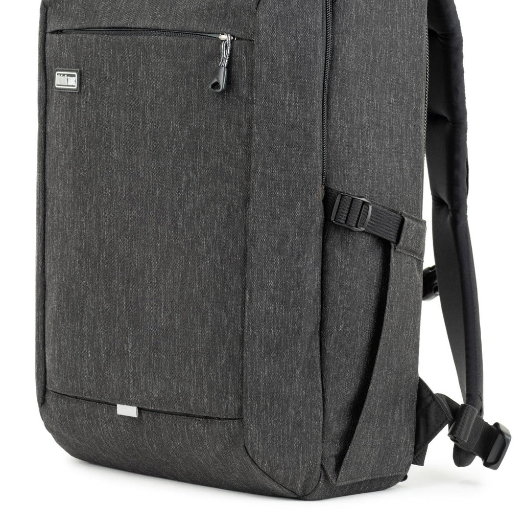 A deep front compartment with zippered mesh pockets has ample room for personal gear, including a 10” tablet and 13" laptop. And with its plush shoulder harness and removable waist belt, the BackStory is comfortable enough to wear all day.