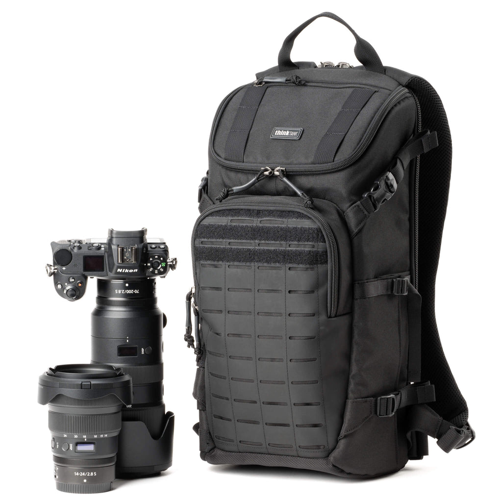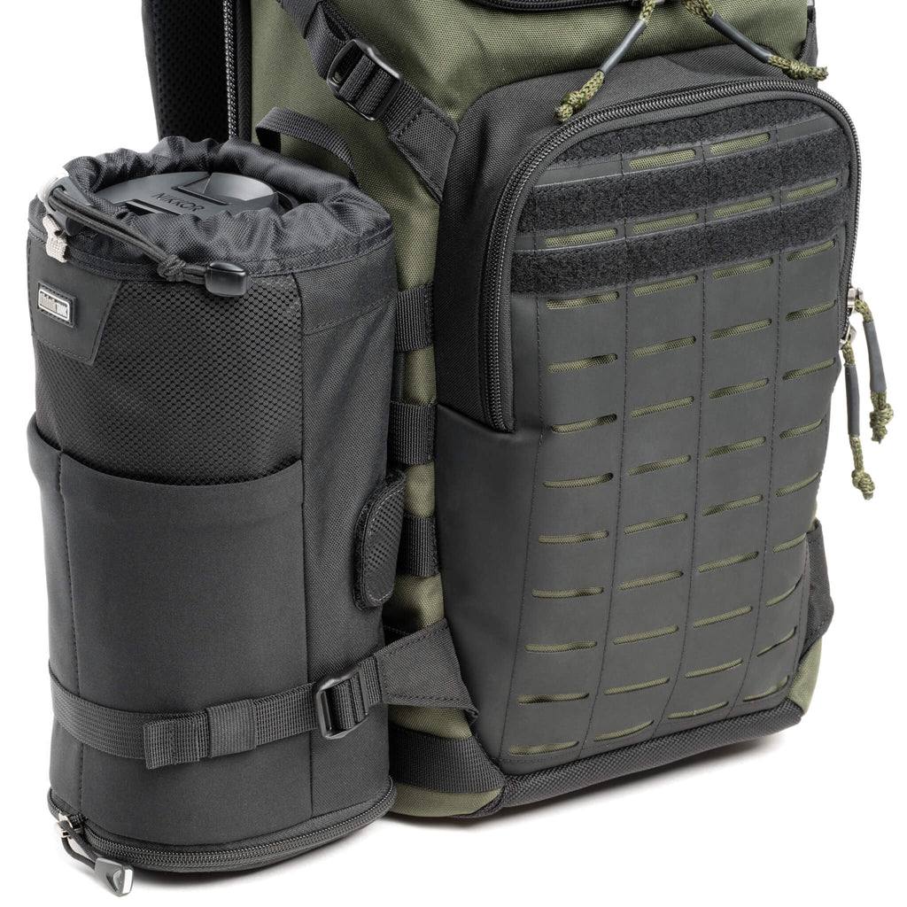 - Tactical webbing rails on the side enable you to attach Think Tank modular pouches