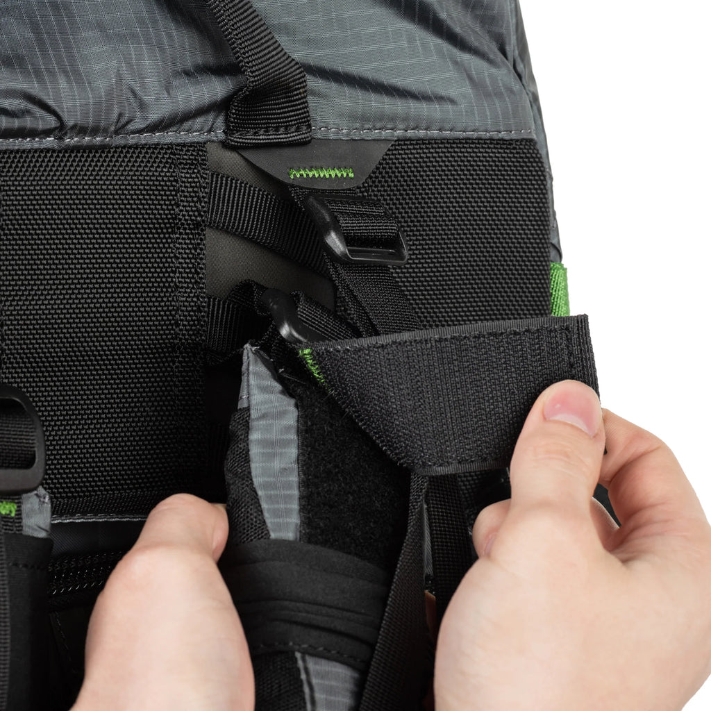 - Floating top-pocket allows you to strap a rope or a jacket underneath