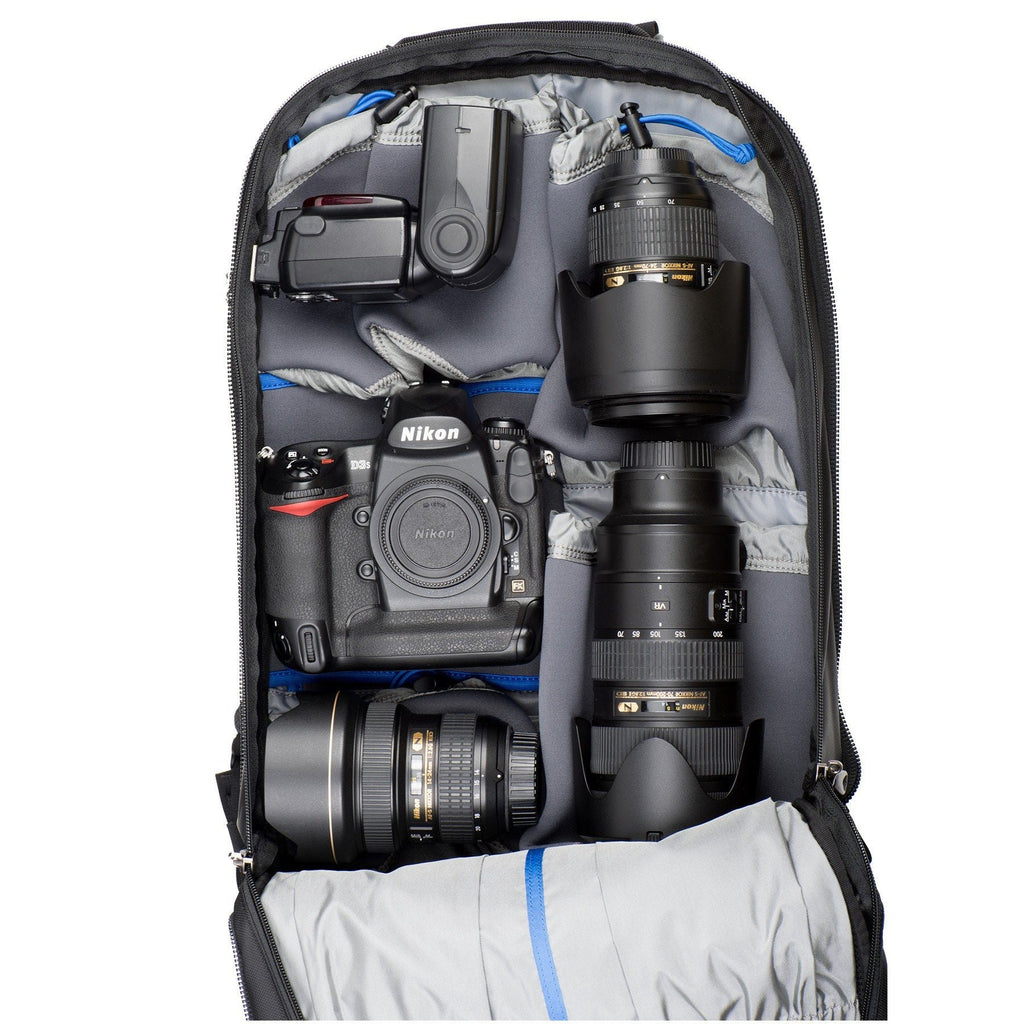- Holds a full assortment of photo gear, tripod, 17” laptop and a full size tablet