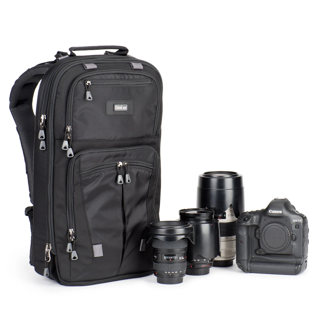 A revolution in backpack design, the Shape Shifter V2.0 expands and contracts to hold gripped camera bodies and a laptop.