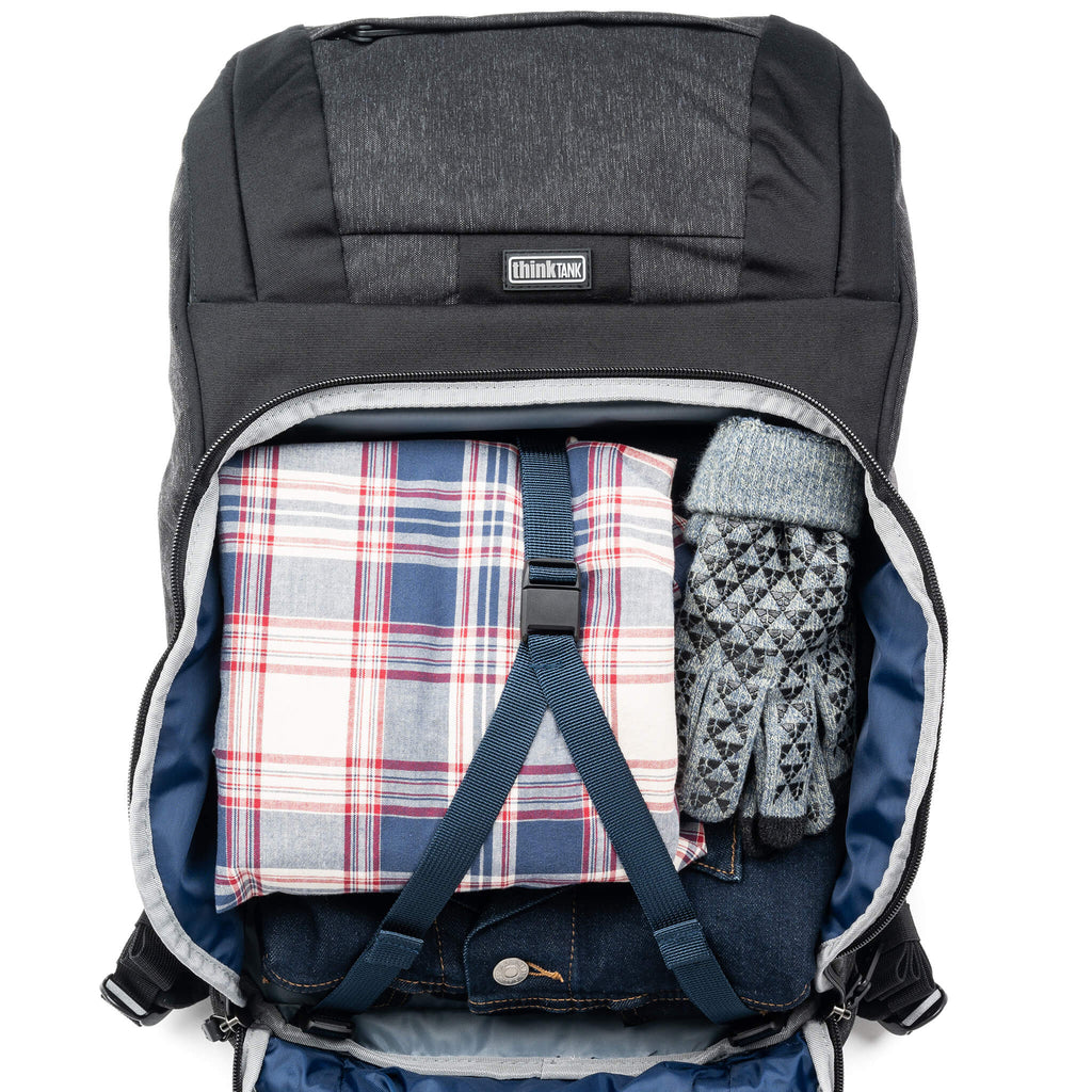 The spacious top compartment features a magnetic lid that is easy to open with one hand, yet closes securely with just a quick flip. Inside the top compartment, zippered pockets keep your essential items secure and organized, including a 16-inch laptop and 10-inch tablet, or documents. A large, bottom compartment offers front and side access enabling you to reach bulky items like a jacket without taking off the backpack. A convertible divider between the top and lower compartments create one large continuous space.