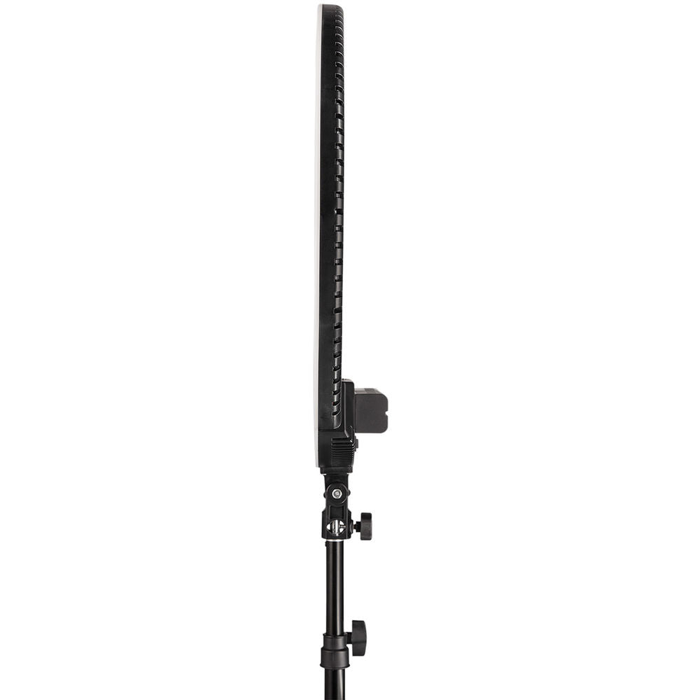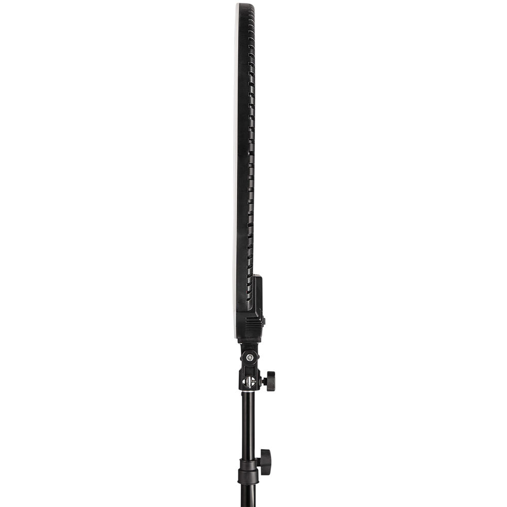 This ring light is fully dimmable with an adjustable color temperature ranging from 3200 to 5600K in of 25K increments. With a high CRI/TLCI of up to 97, light output is color accurate for skin tones. The ring light's display screen allows power and color temperature adjustments quickly with just a single dial.