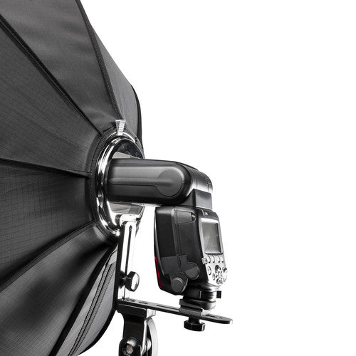 The 26" Rapid Box Switch Octa-S Softbox is a good choice for use in the studio or on location for portraits, fashion, or corporate work. The large surface area of the softbox gives its output a wraparound quality especially when used close up. Another benefit is the reflection of natural-looking catchlights in your subject's eyes. As indicated in the name, the softbox has a basic ring to hold it together, but instead of full speed rings, 13 "inserts" are available and are required for a speedlight or specific brand of strobe. The quick release thumb-lock on the Rapid Box Switch ensures the security of your light. Besides the benefit of speed, the softbox is structurally sound with durable metal framework, heat-resistant fabric, and a reflective silver interior that maximizes your light source's output. The Rapid Box Switch Octa's diffusion material has also been thoroughly tested and found to be neutral, ensuring a true rendition of color. A carry case is included for storage and transport.