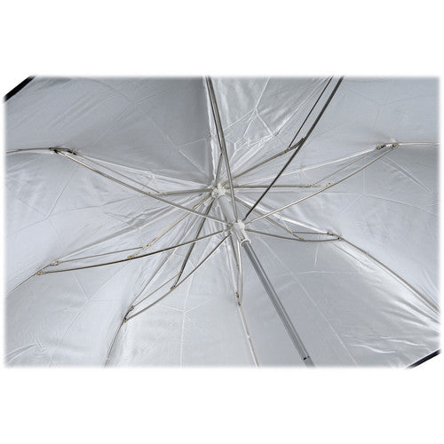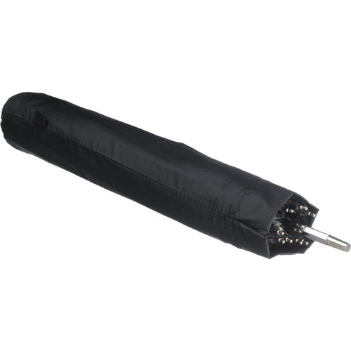 This Westcott 43" White Satin Umbrella has a removable black backing, so that it may be used as a "shoot-through", makeshift softbox. It has a collapsible shaft, which makes it very compact for packing away in your location case.