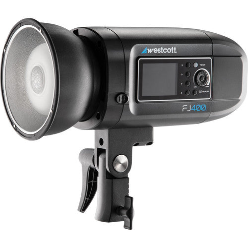 The FJ400 maintains a color temperature stability of 5500K (±150K) throughout its entire 9-stop output range, with flash increments of either 0.1 or 1.0 stops. It features a 20W 5600K LED modeling lamp with auto-adjust and independent output control.