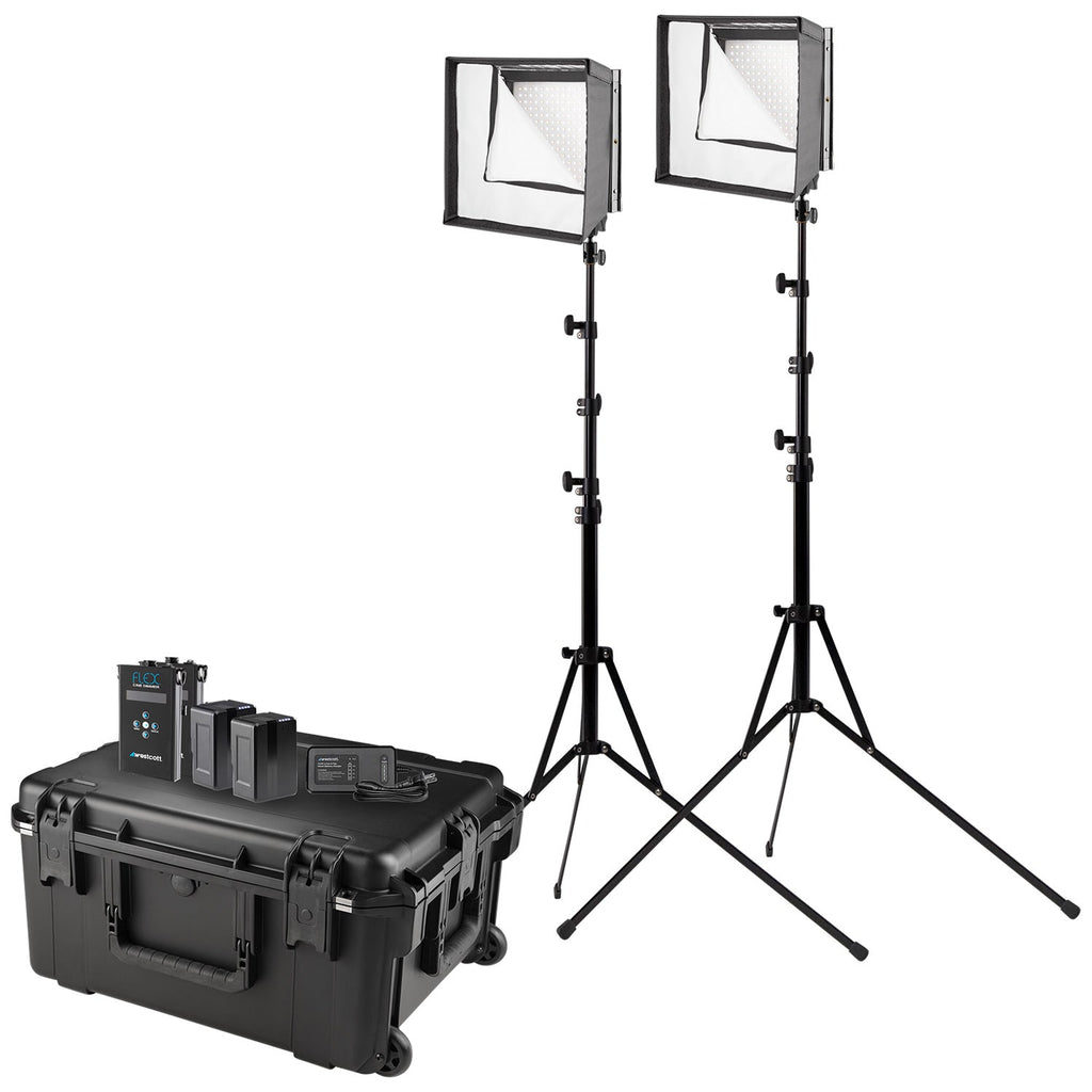 Westcott has put together the 1 x 1' Flex Cine Bi-Color LED 2-Light Travel Kit with 14.8V Mini V-Mount Batteries for image makers on the road who require their own portable power source for location shooting. The kit includes two 1 x 1' Bi-Color LED Mats, each with a dimmer, softbox with diffuser, Dual-Joint Tilter Bracket, 7' light stand, and a 95Wh 14.8V Li-ion Mini V-mount battery. A D-Tap charger is included to charge them. Westcott has also included Scrim Jim sections and corners that allow you to construct a 20 x 20" frame to which you can attach the optional diffusion material of your choice. Three cable ties are included, as is a hard waterproof case for storage and transport.