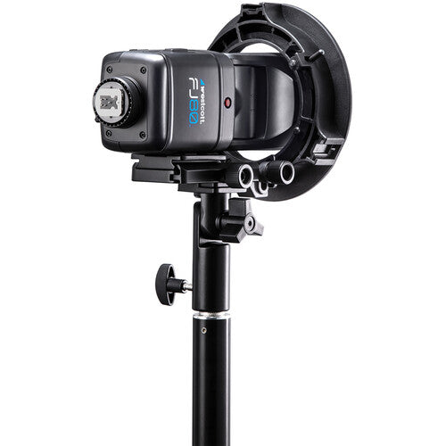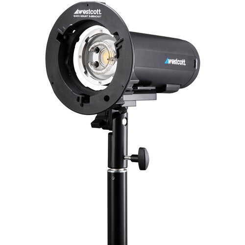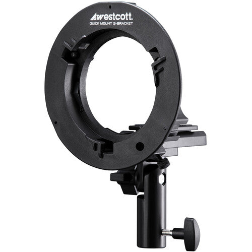 Use this Westcott Quick Mount S-Bracket to mount umbrellas and modifiers onto compact lights without causing unwanted stress that can damage your delicate gear. For additional usability, the bracket is outfitted with three cold shoe mounts around its perimeter for speedlights with umbrellas. Made from a combination of aluminum and high-impact plastic, it is compatible with lights up to 3.5" diameter and modifiers weighing up to 4.5 pounds.
