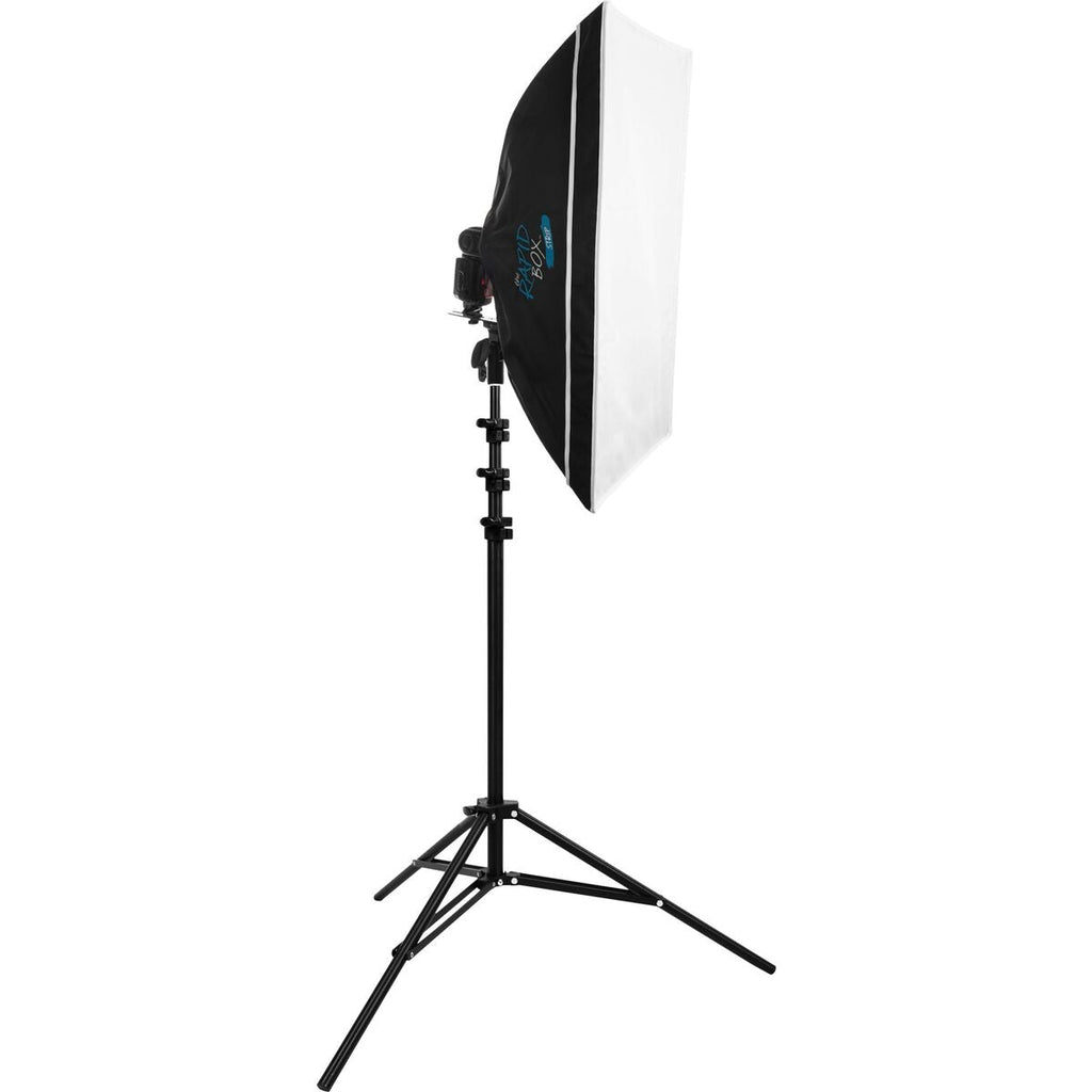 The Rapid Box's versatile mounting bracket features an adjustable height and depth for use with virtually any shoe-mount speedlites or off-camera flash units. This bracket includes a built-in tilting function for precise positioning and a standard light stand receptacle.