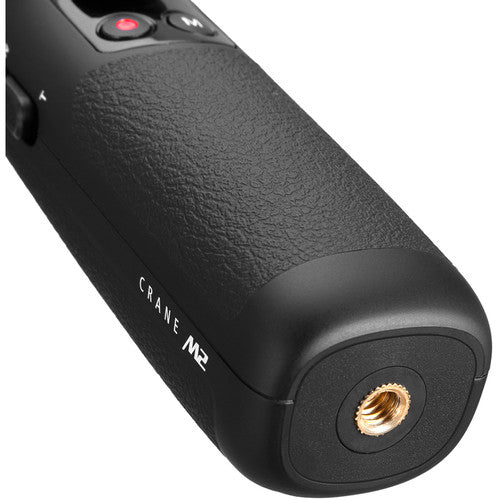 An OLED display on the gimbal confirms the selected operation mode, battery level, Bluetooth/Wi-Fi status, and other functions. The CRANE-M2 features a quick release camera mounting system that lets you secure or remove your camera at the push of one lock button. Scale marks and memory locks help you balance the camera and lock the balance position for the camera used. A hand strap and mini tripod are also supplied with the gimbal. The mini tripod attaches on the bottom to function as a tripod or a stand, but it can also be used as an extension to provide you with even more control over the gimbal and camera, as you'll have a better grip on the gimbal.